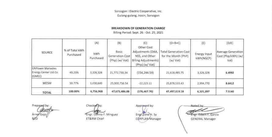 BREAKDOWN OF GENERATION CHARGE (NOVEMBER 26 – DECEMBER 25, 2021)