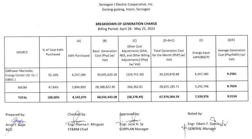 BREAKDOWN OF GENERATION CHARGE (APRIL 26 – MAY 25, 2022)
