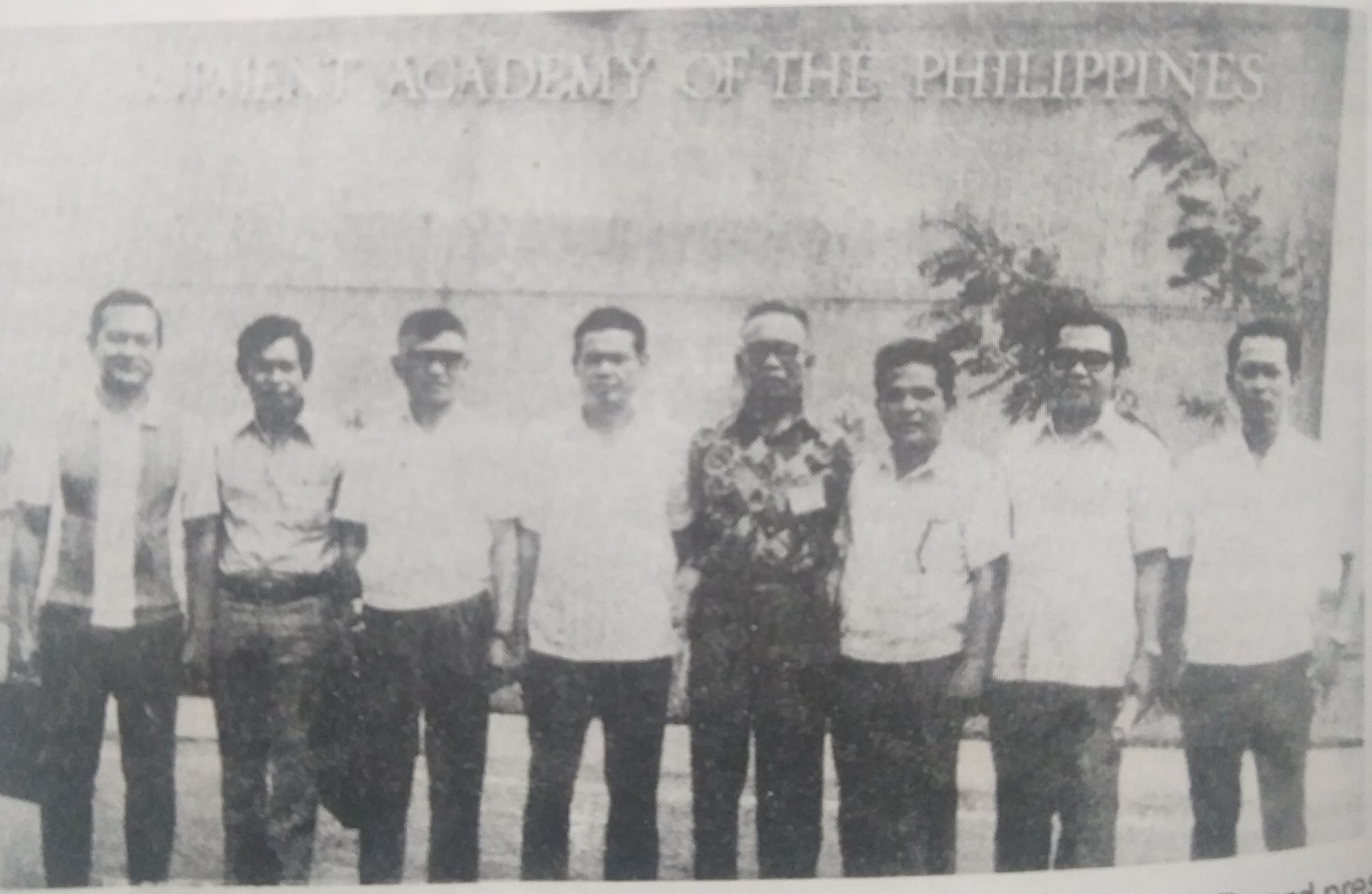 President Luzuriaga and GM Futalan with Bicol Coops Board Presidents and General Managers during the 1st Annual Conference Workshop at DAP, Tagaytay City, July 30 to August 4, 1973. From left Pres. Luzuriaga, GM Favoreal, GM Futalan, Pres. Nacianceno, Amado Tacorda, Salvador Berces, Wilfredo Molina and GM Chua.
